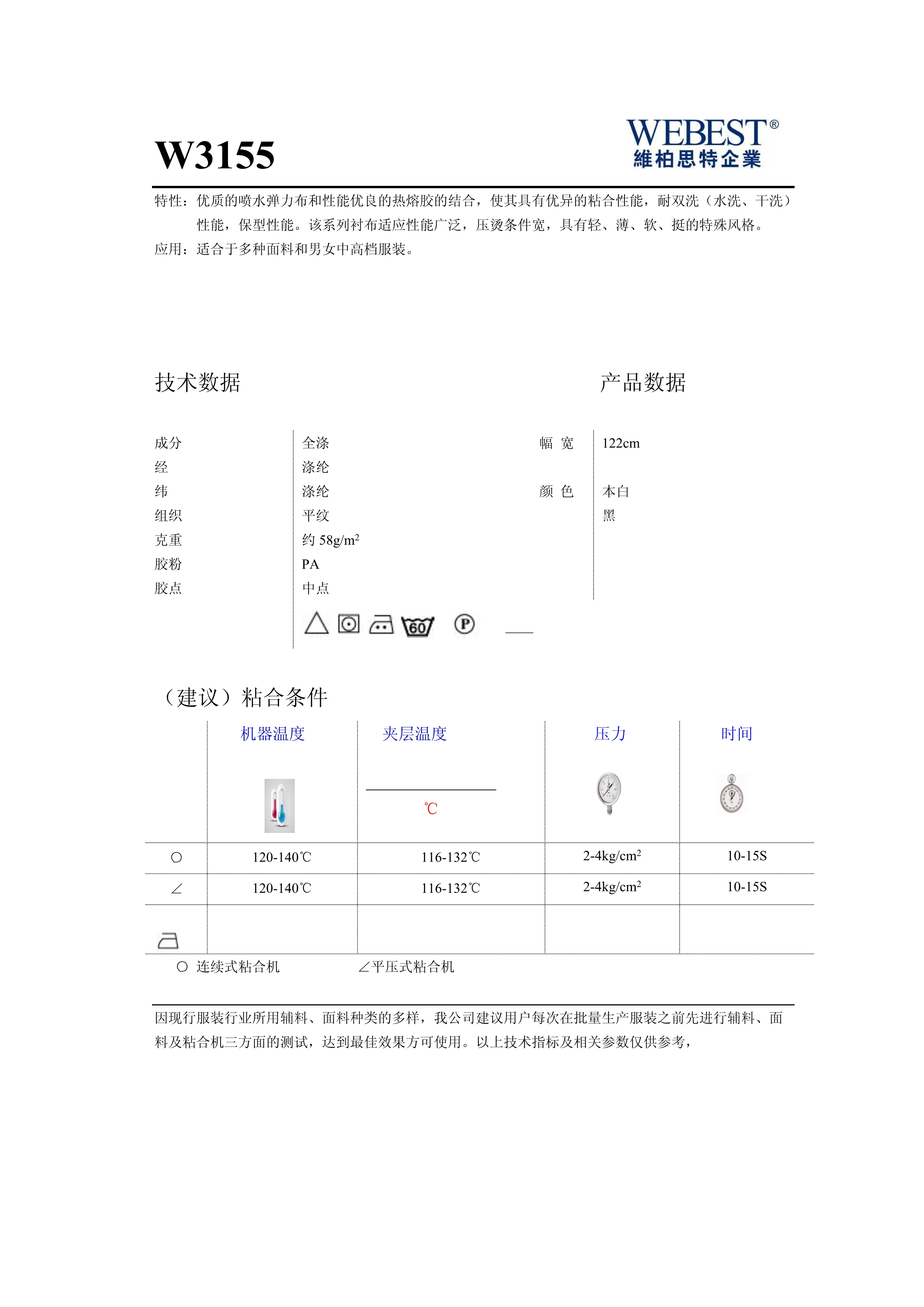 | W3155 | 58 | 全滌 | 平紋 | 122 | 黑,本白 | |