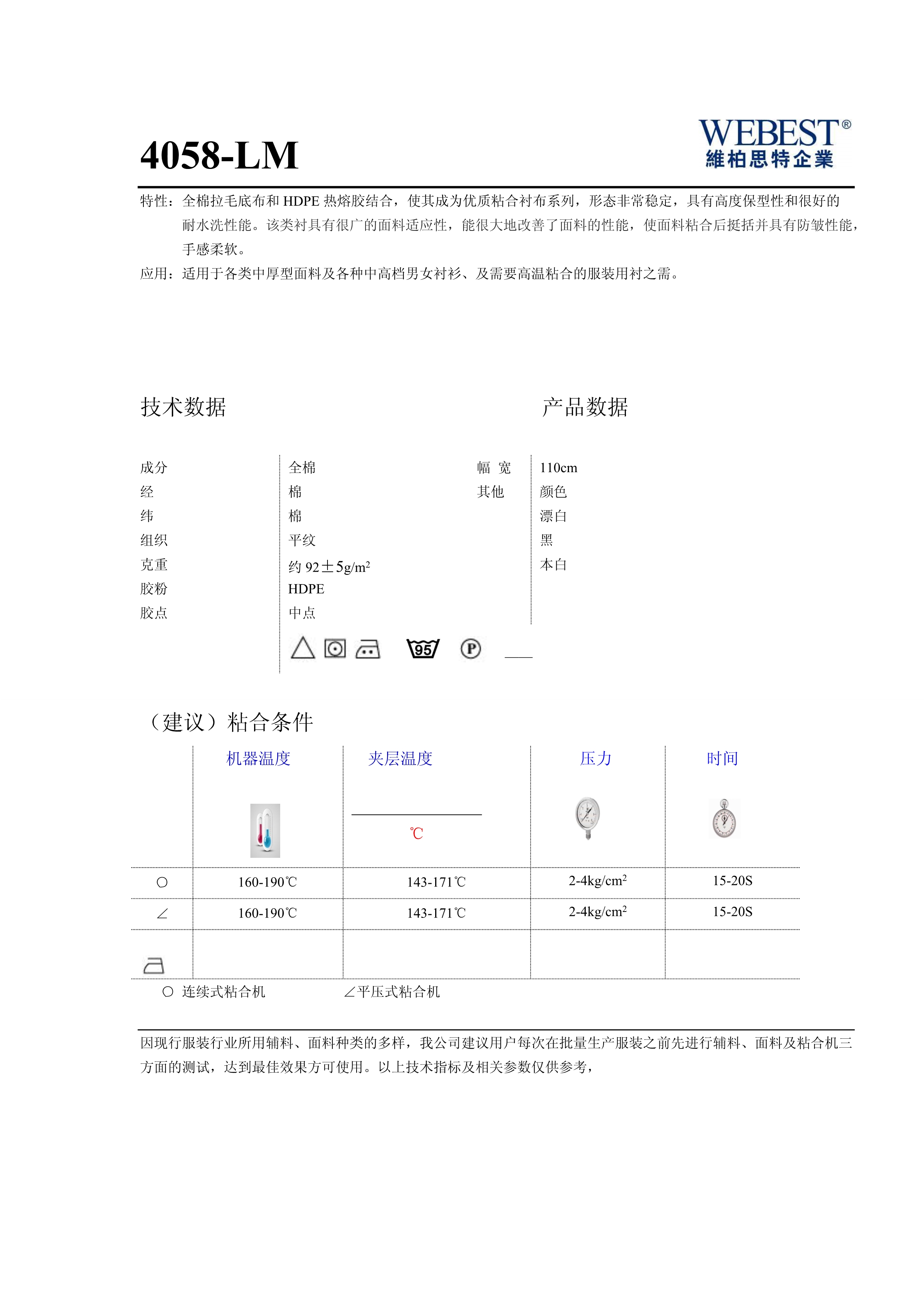 | 4058-LM | 92±5% | 全棉 | 平紋 | 110 | 黑,本白 | |