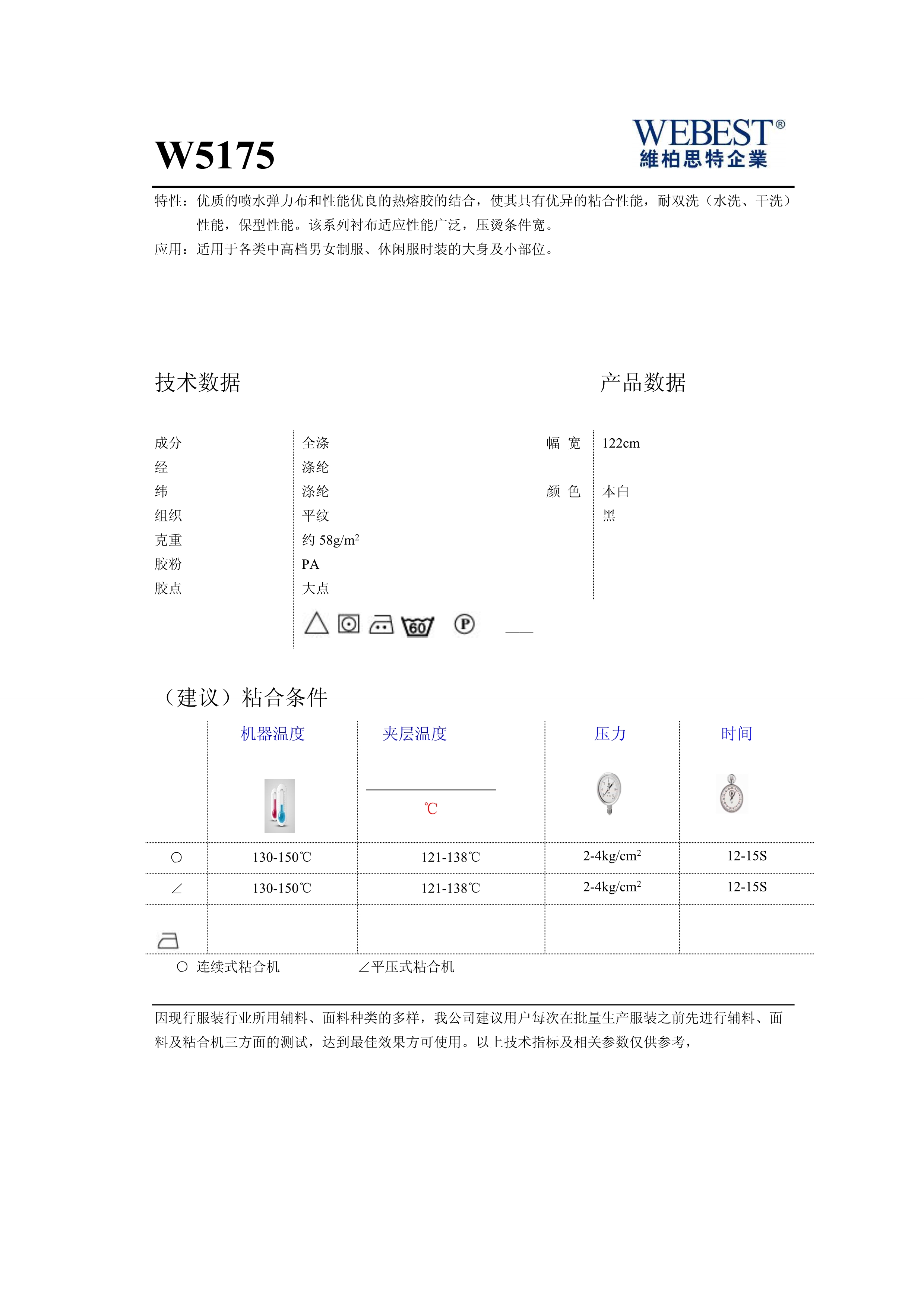 W5175 | 58 | 全滌 | 平紋 | 122 | 黑,本白 |