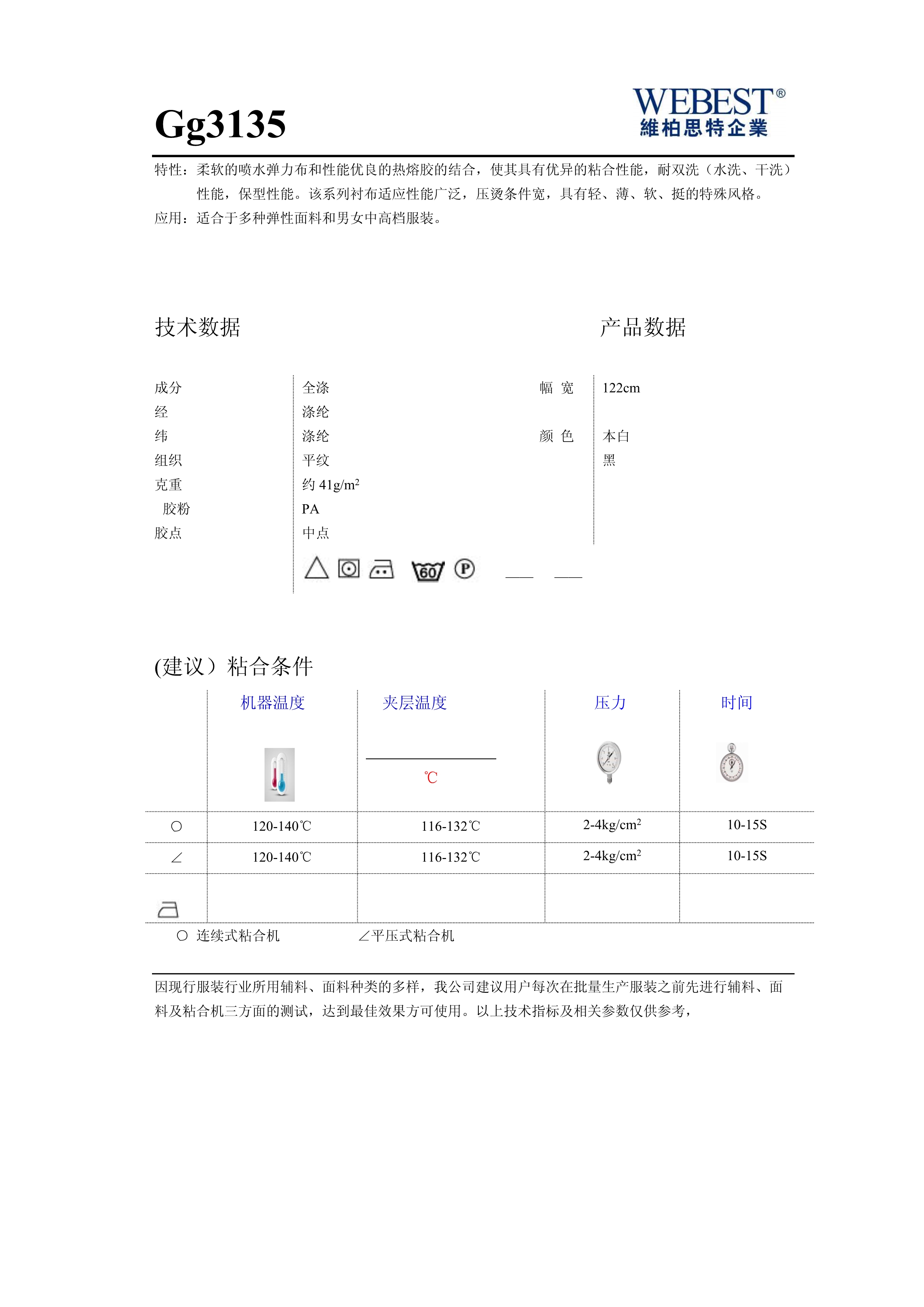 | GW3130 | 41 | 全滌 | 平紋 | 122 | 黑,本白 | |