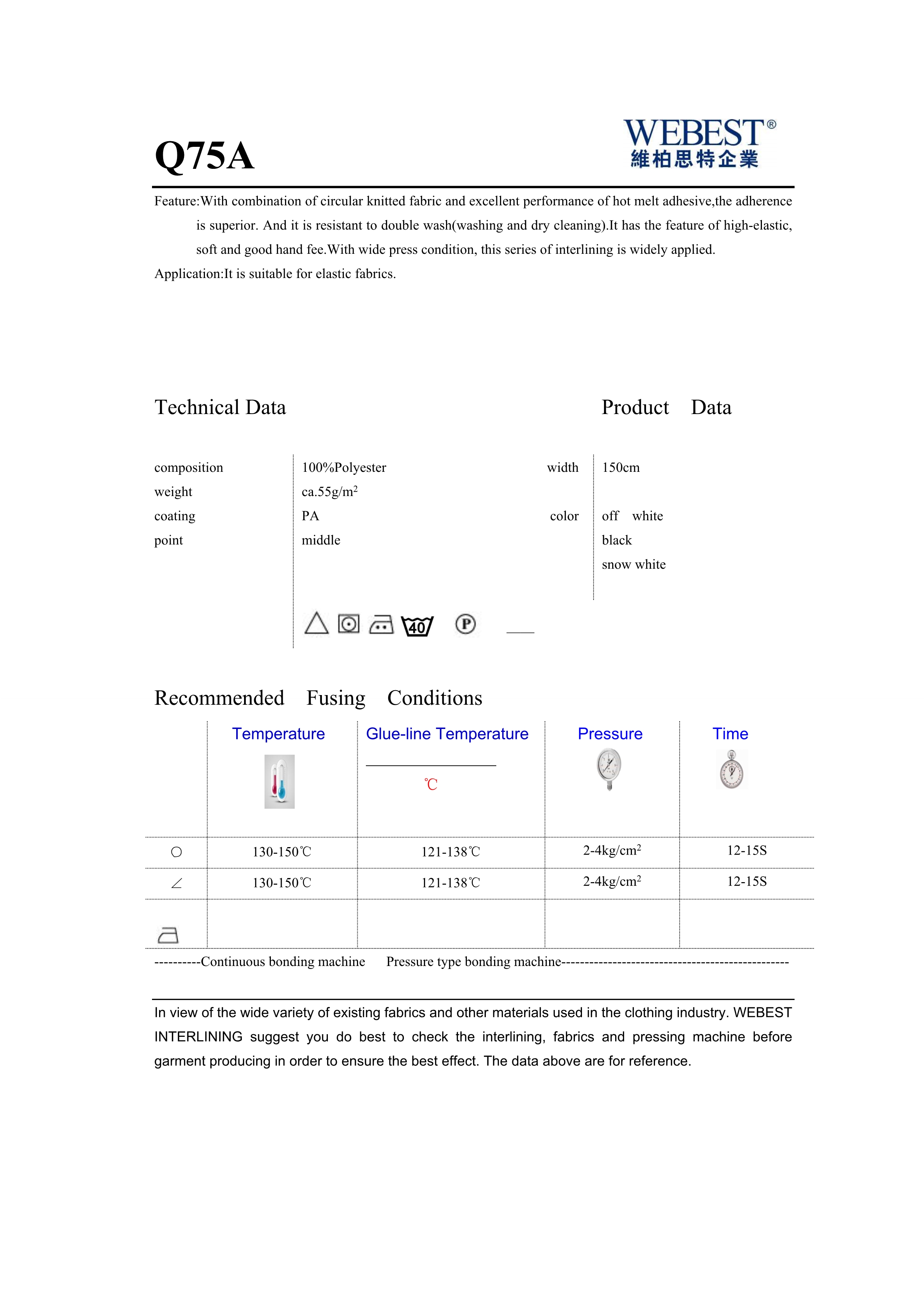 | W75A | 55 | 100%PES | —— | 150 | snow white black,off white | |