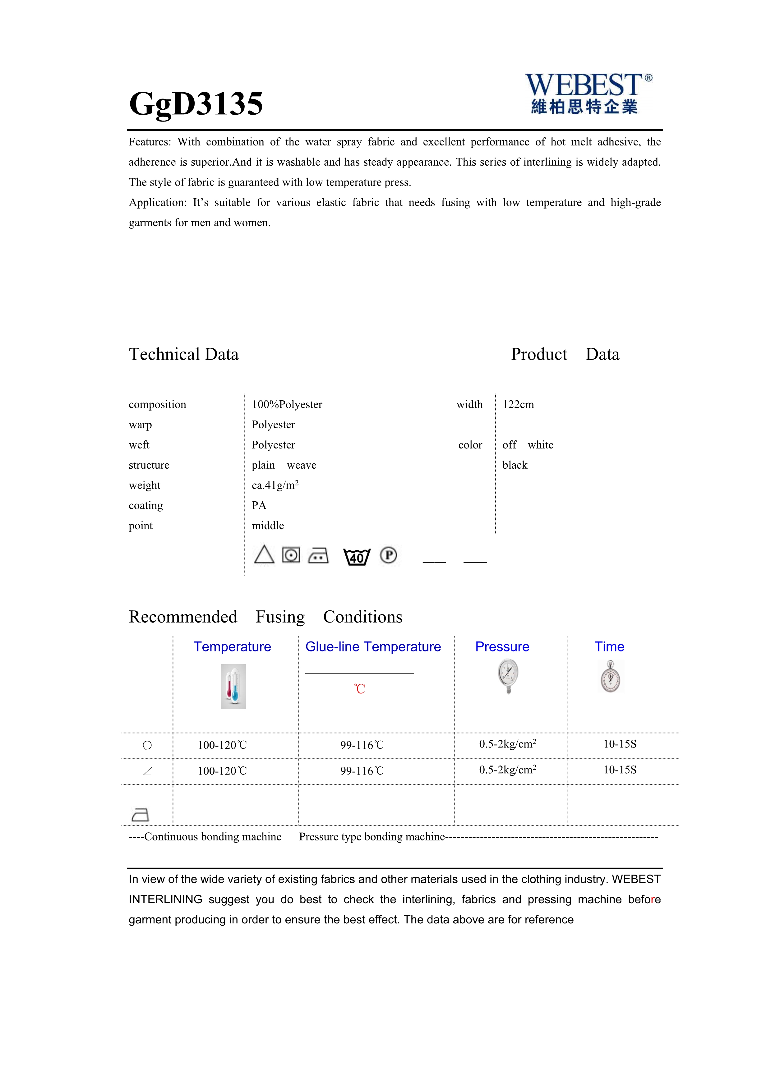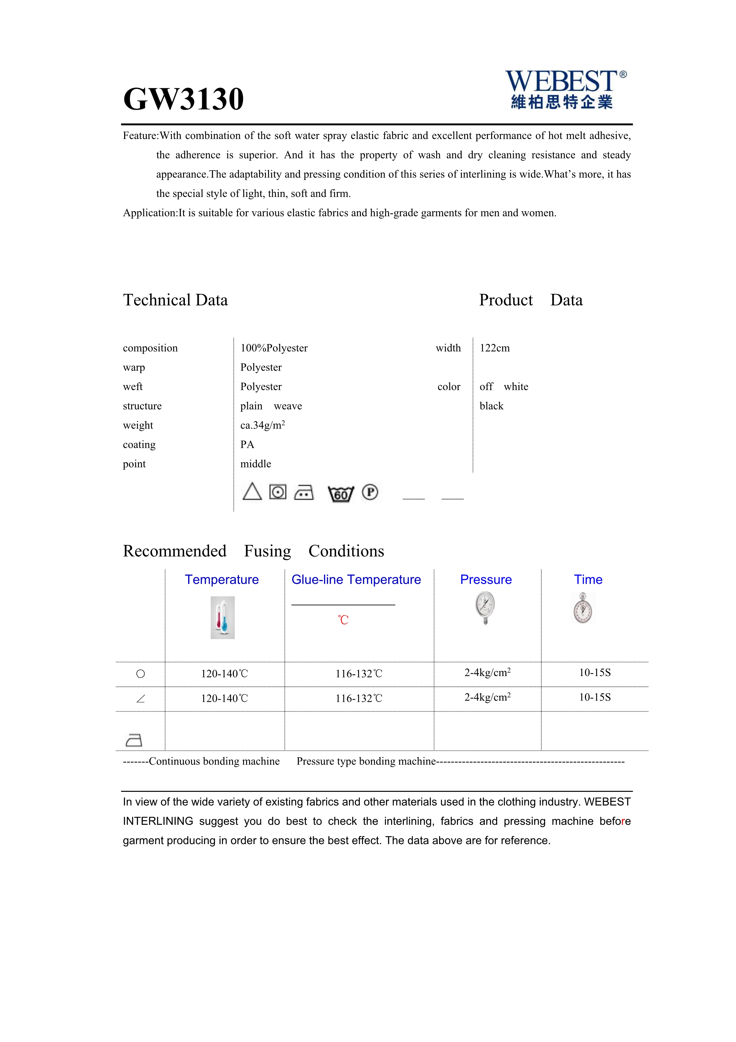 | GW3130 | 34 | 100%PES | plain weave | 122 | snow white black,off white | |
