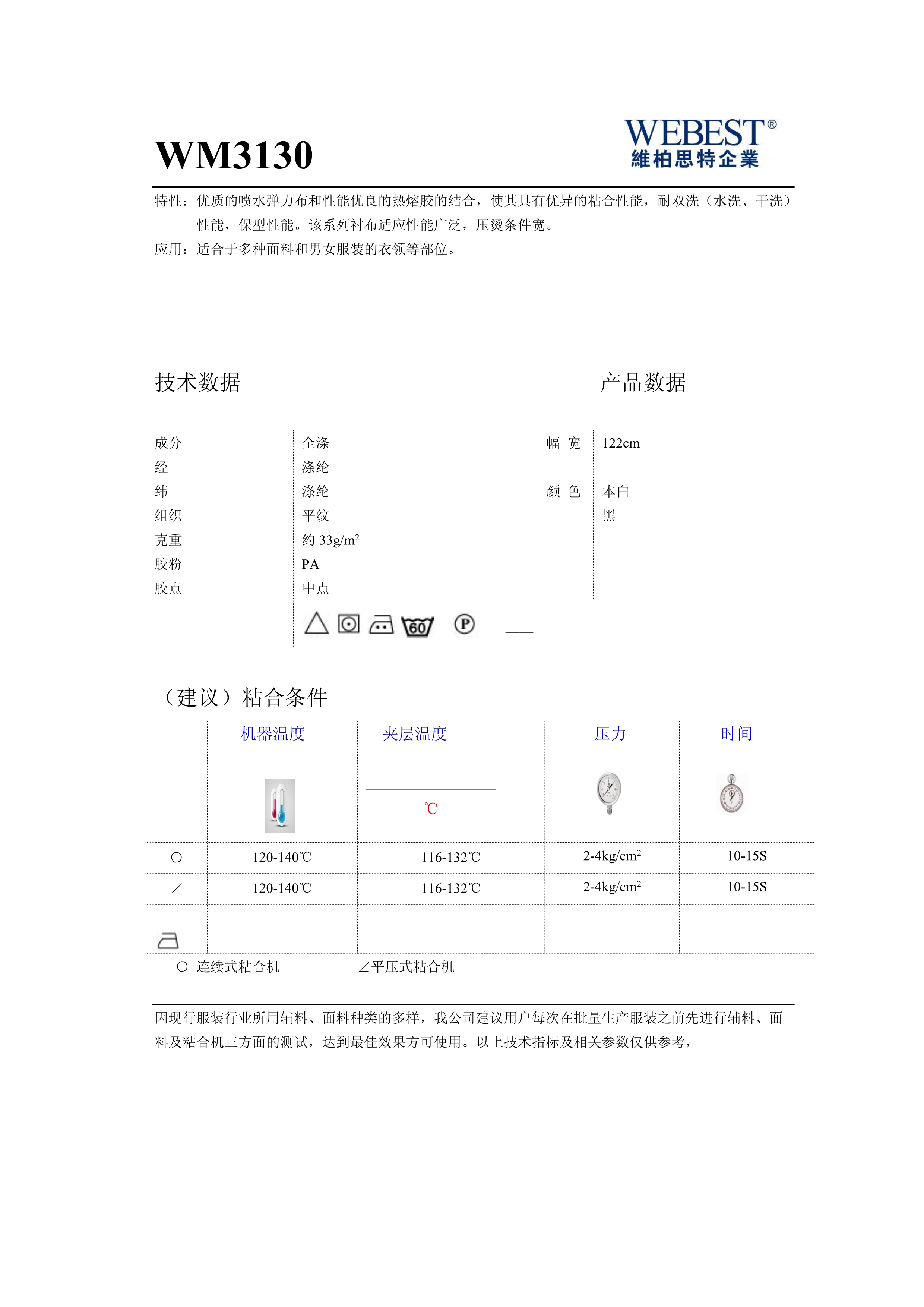 | WM3130 | 33 | 全滌 | 平紋 | 122 | 黑,本白 | |