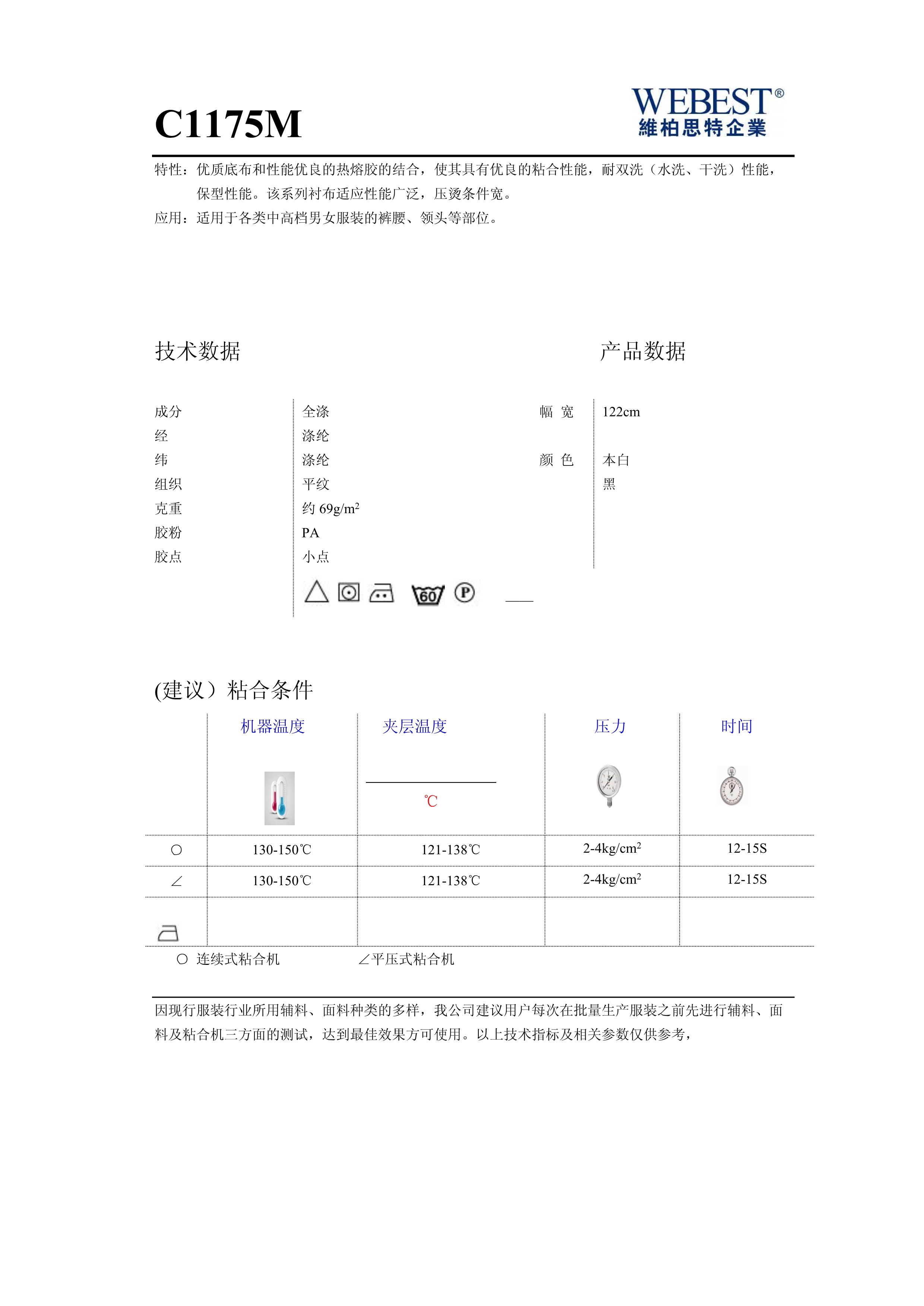 | C1175M | 69 | 全滌 | 平紋 | 122 | 黑,本白 | |