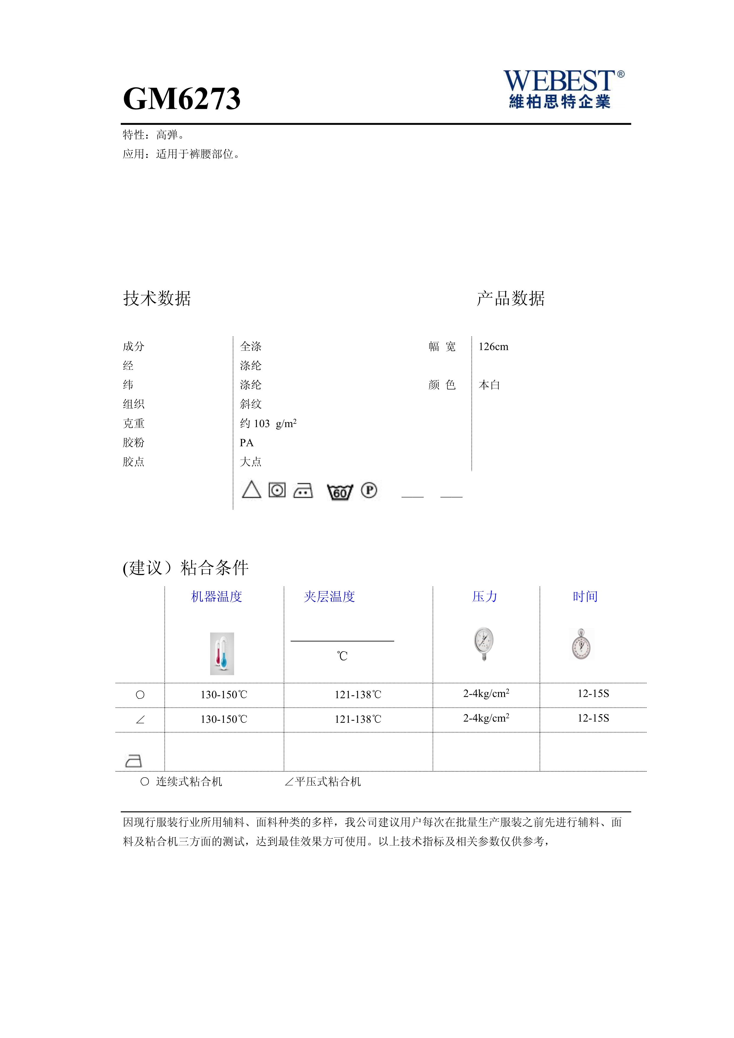 | GM6273 | 103 | 全滌 | 斜紋 | 126 | 本白 |