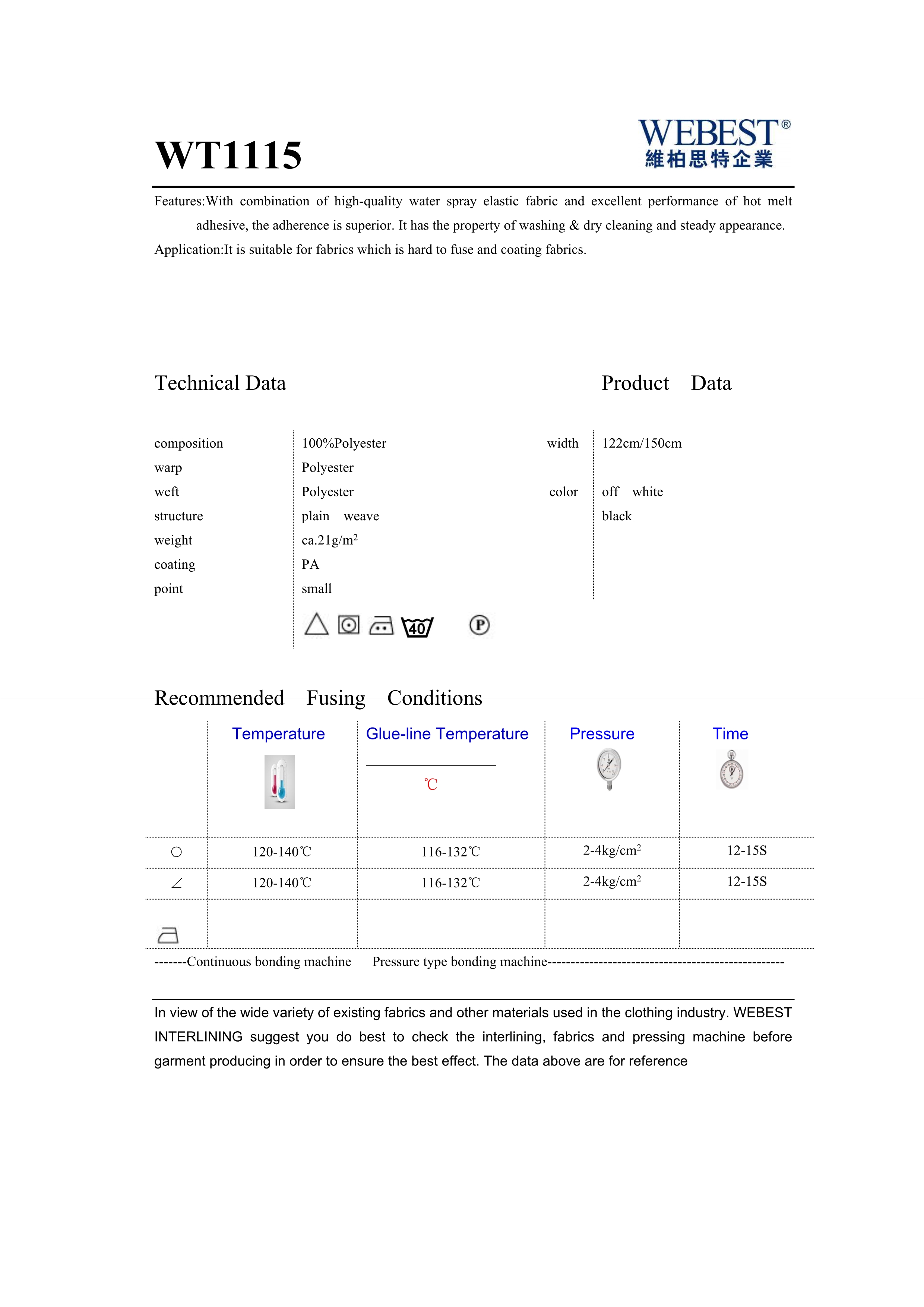 WT1115 | 46 | 100%PES | cross weave | 122 | —— |
