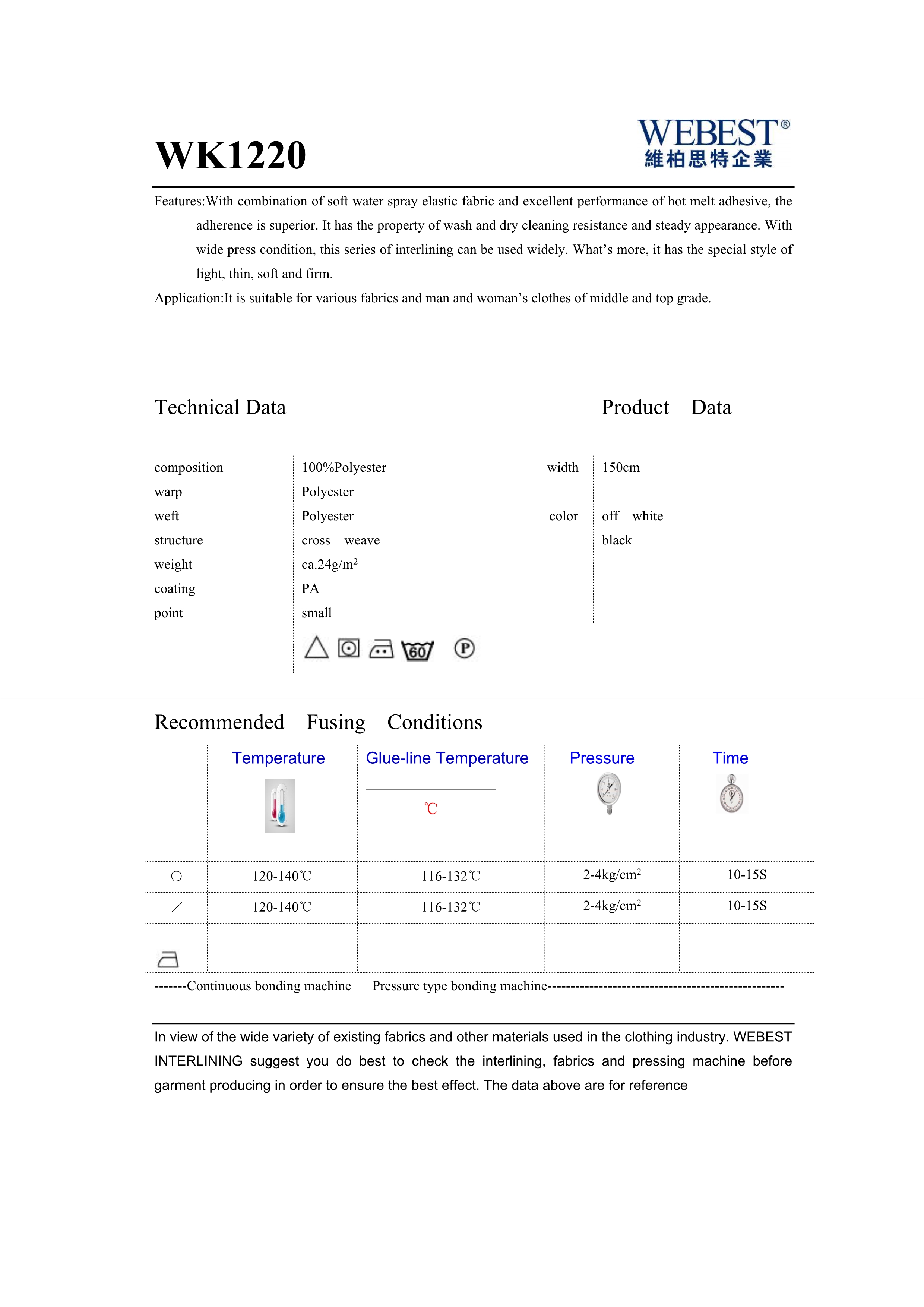 | WK1220 | 150 | 100%PES | |