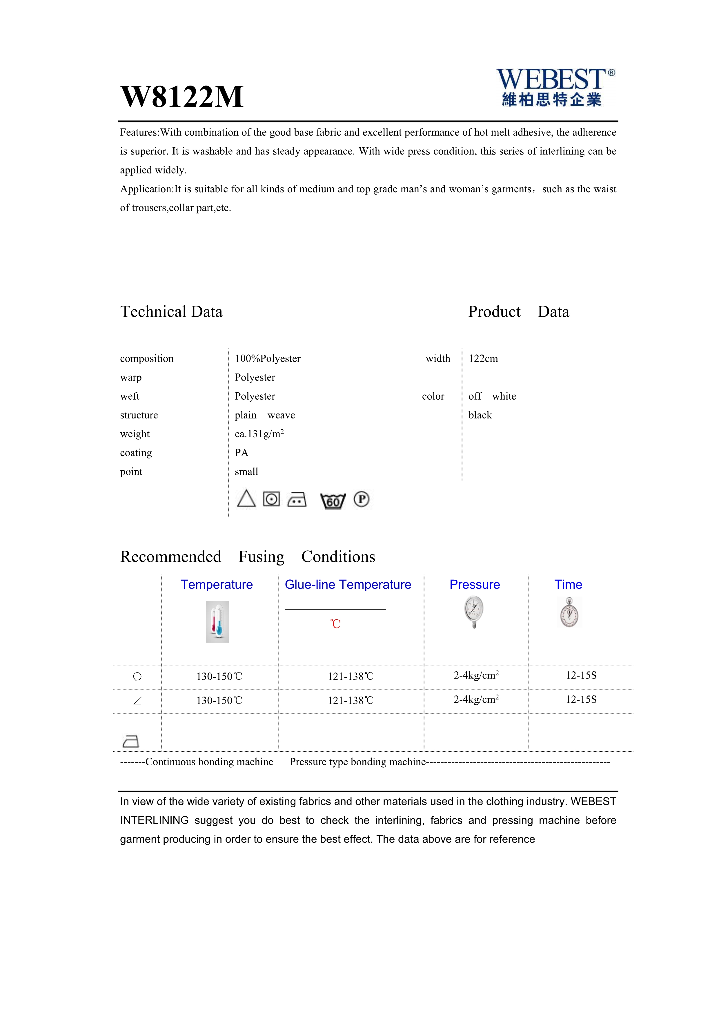 | W8122M | 131 | 100%PES | plain weave | 122 | black,off white | |