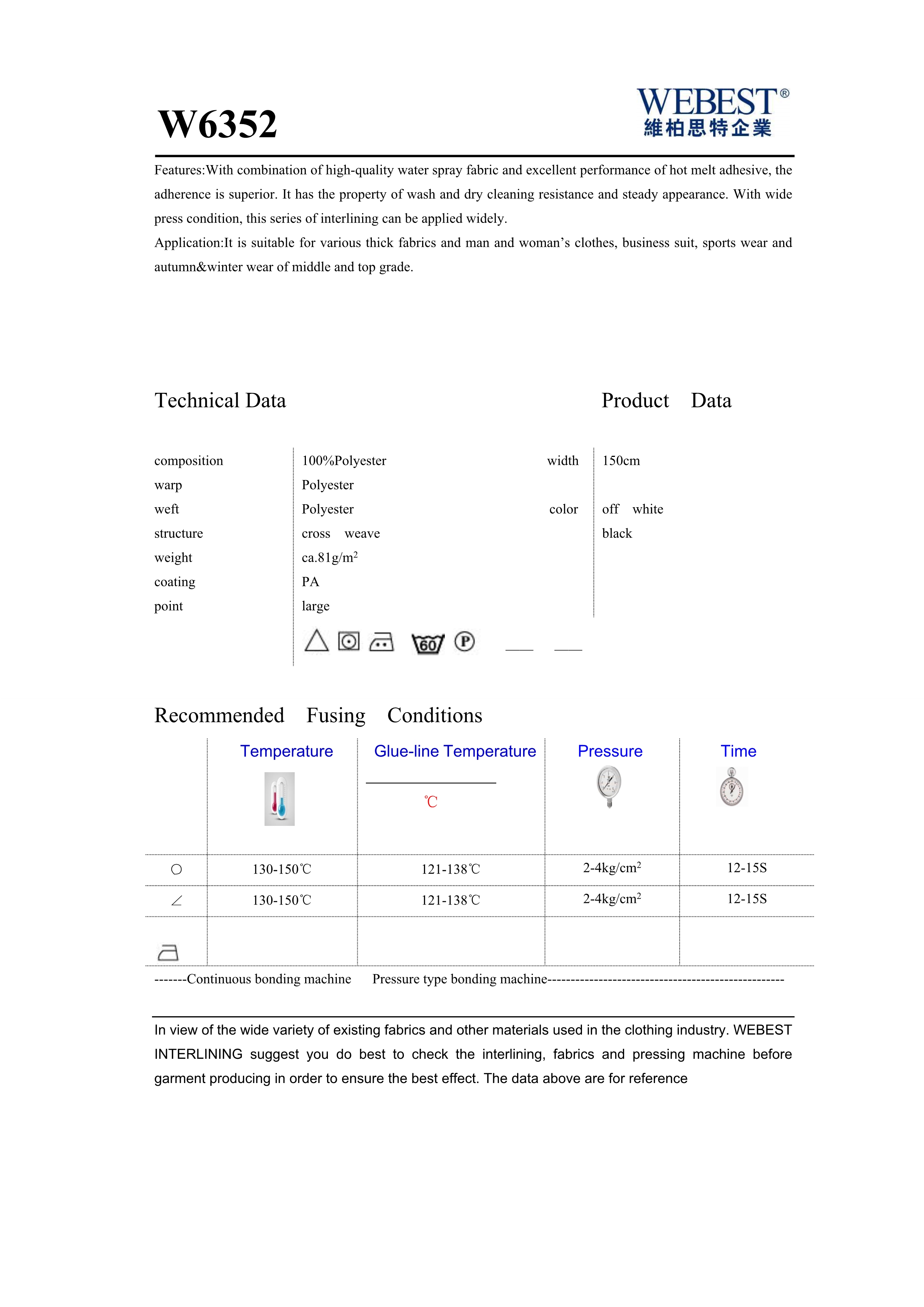 | W6352 | 81 | 100%PES | cross weave | 150 | black,off white | |