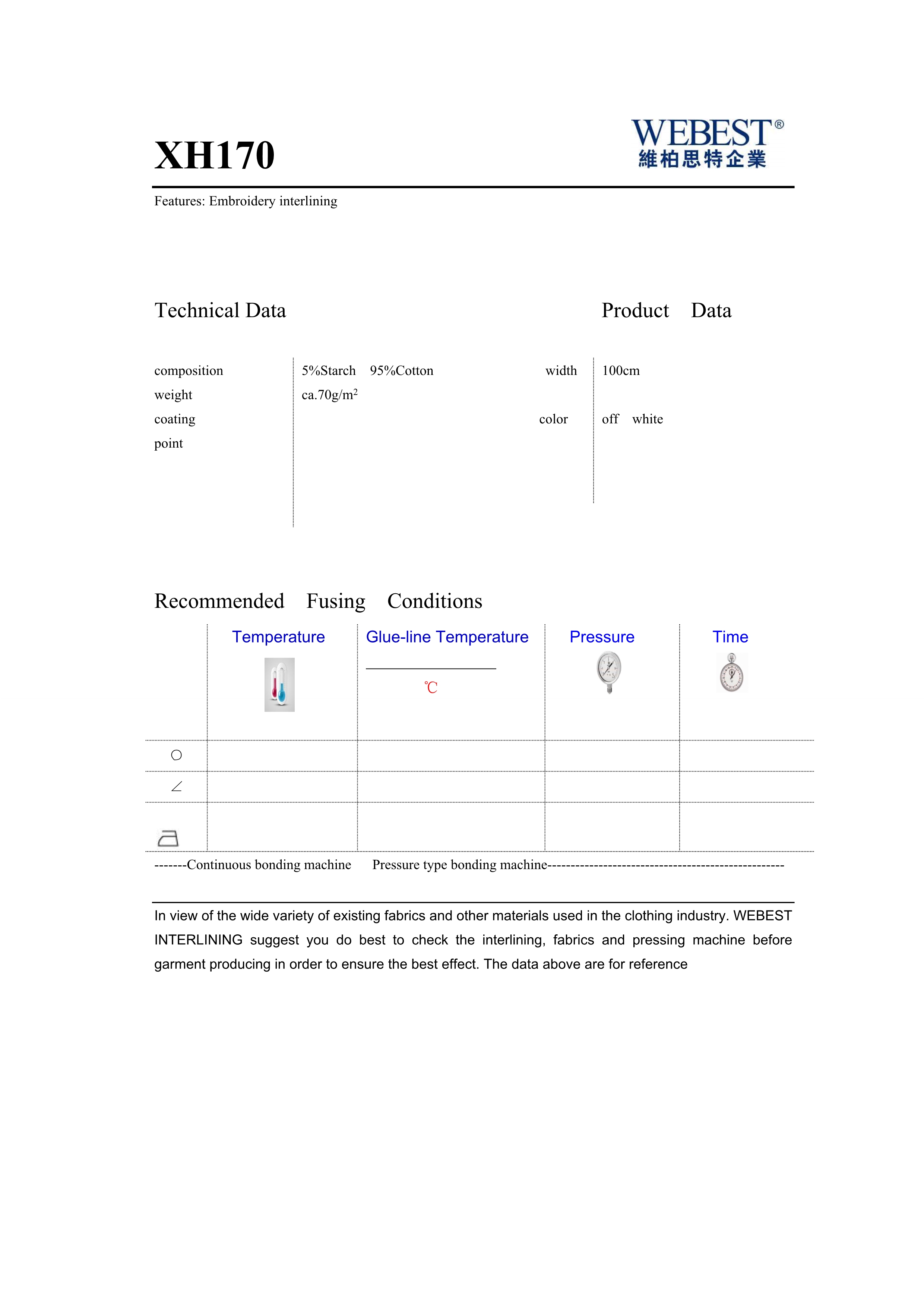 | XH170 | 70 | 5%Starch 95%CO | —— | 100 | off white | |