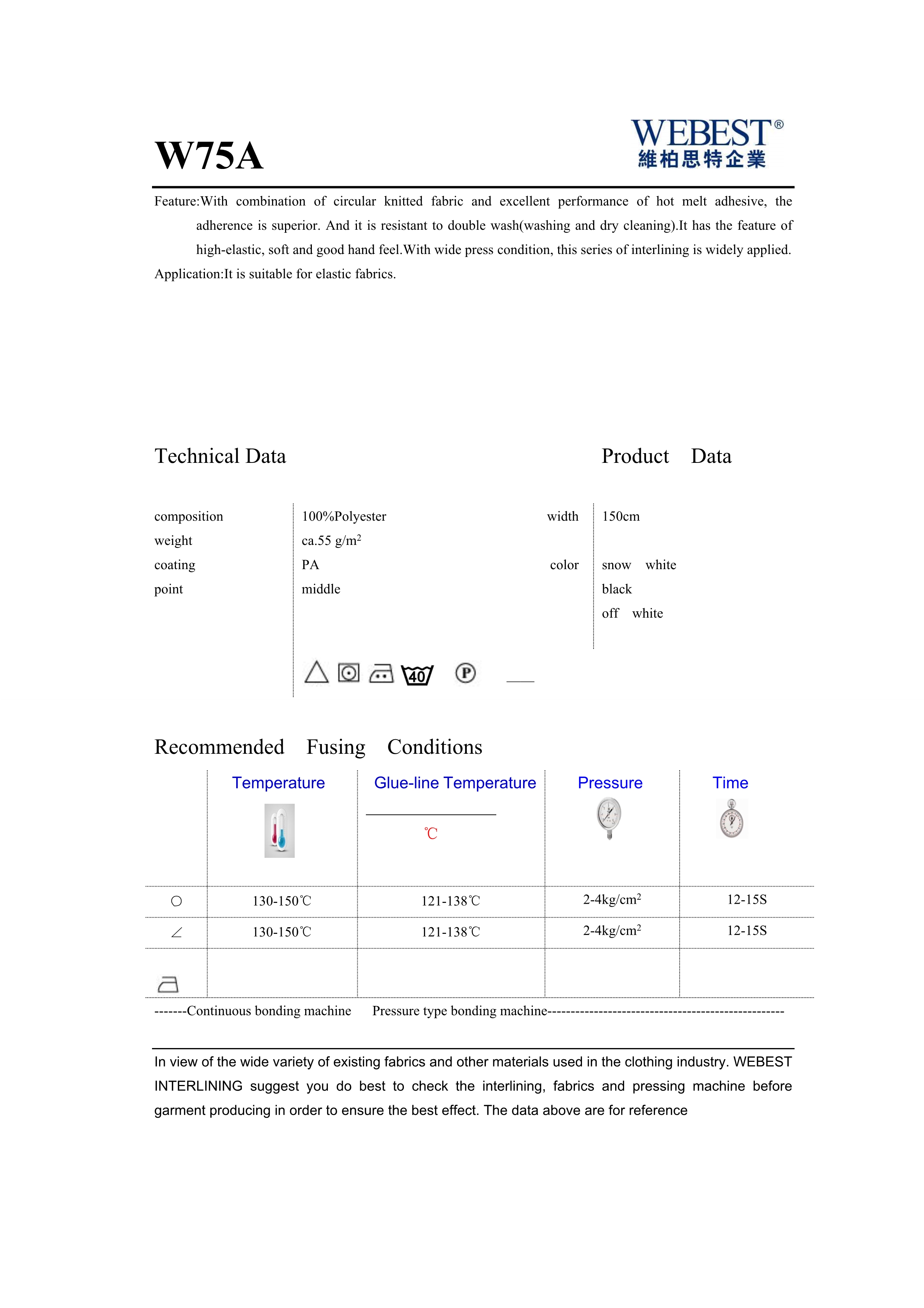 | W75A | 55 | 100%PES | —— | 150 | snow white black,off white | |